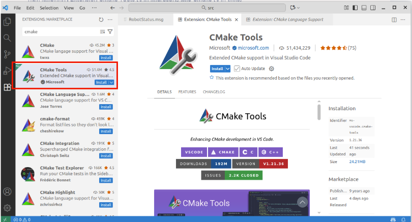 ค้นหาและติดตั้ง Extension CMake Tools (จาก Microsoft)