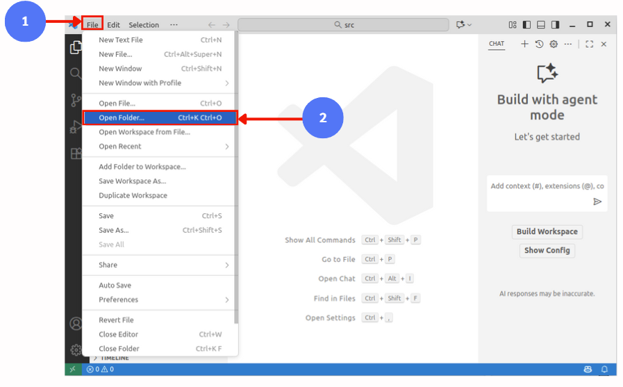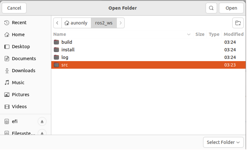 และเลือก โฟลเดอร์ src จากนั้นกด Open