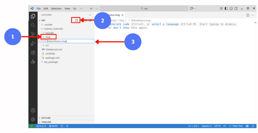 สร้างไฟล์ RobotStatus.msg ภายใน msg