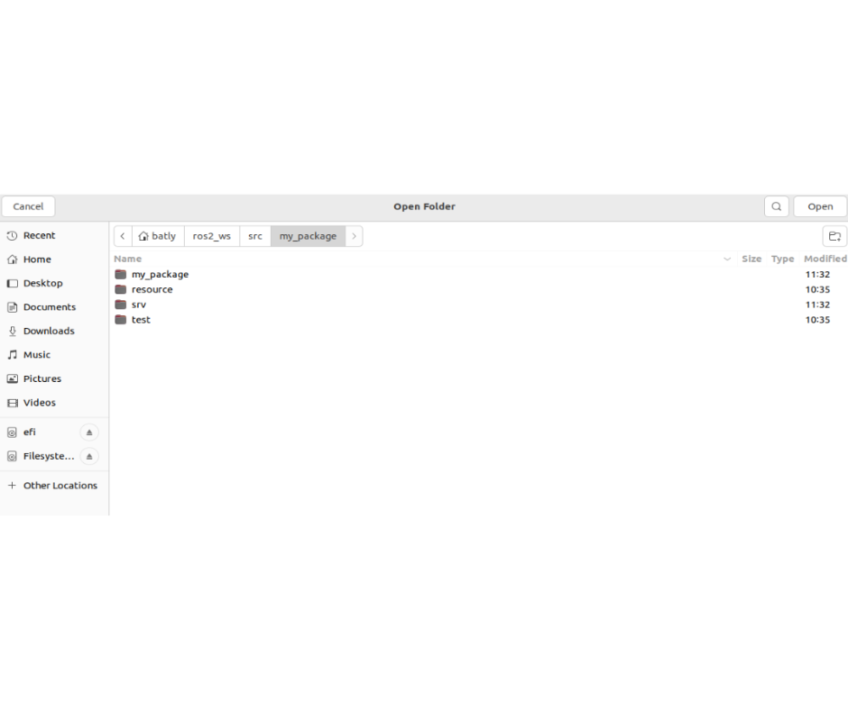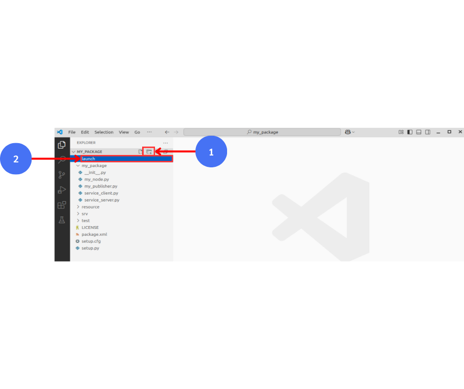 เปิดโฟลเดอร์ /ros2_ws/src/my_package บน VS Code