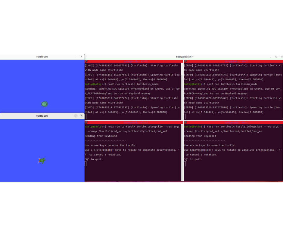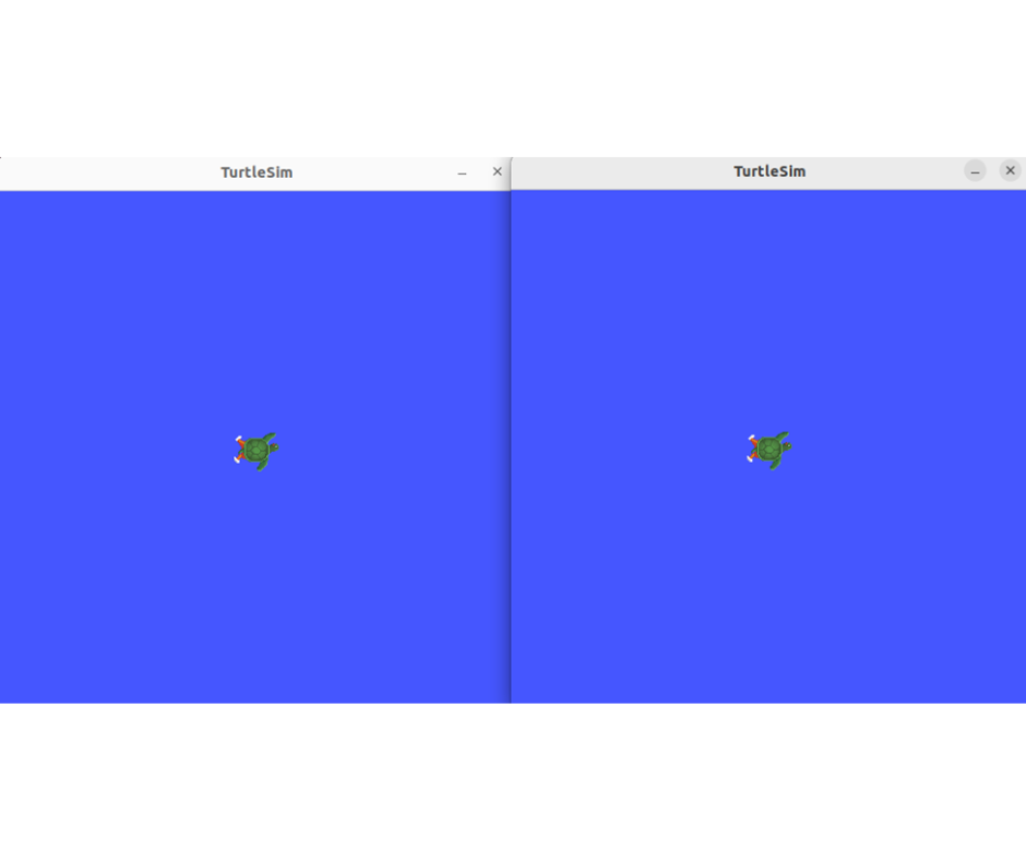 โดยปกติแล้ว เมื่อรันคำสั่งนี้โดยไม่มีการตั้งค่าเพิ่มเติม มันจะสร้าง Node ที่มีชื่อเดียวกัน turtlesim ทั้งสองตัว (แต่จะต้องระบุชื่อที่แตกต่างกันถ้าต้องการควบคุมแยก)