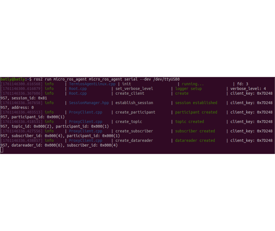ros2 run micro_ros_agent micro_ros_agent serial --dev /dev/ttyUSB0
