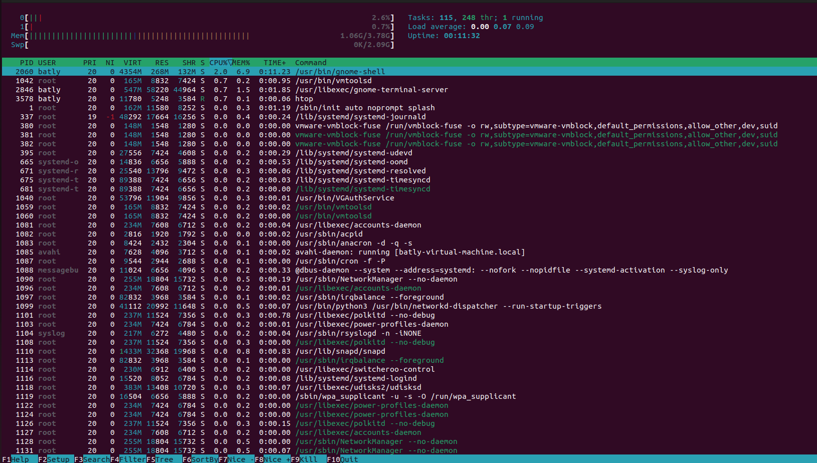 (กด F10 หรือ q เพื่อออกจาก htop)