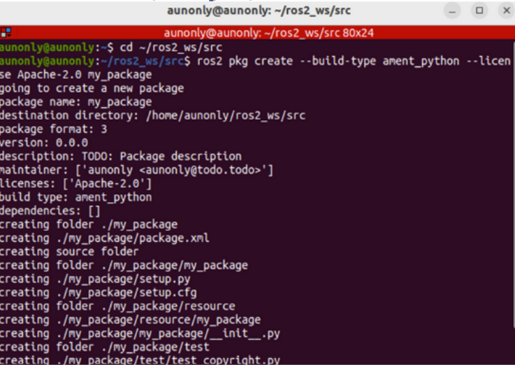 ros2 pkg create --build-type ament_python --license Apache-2.0 my_package