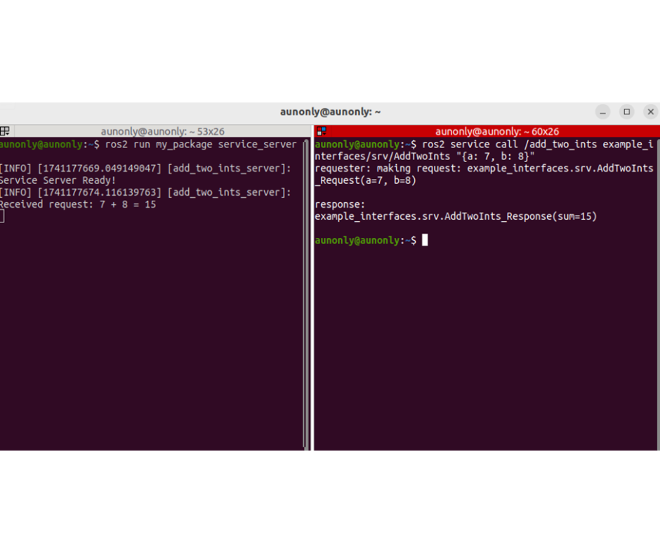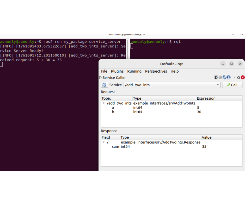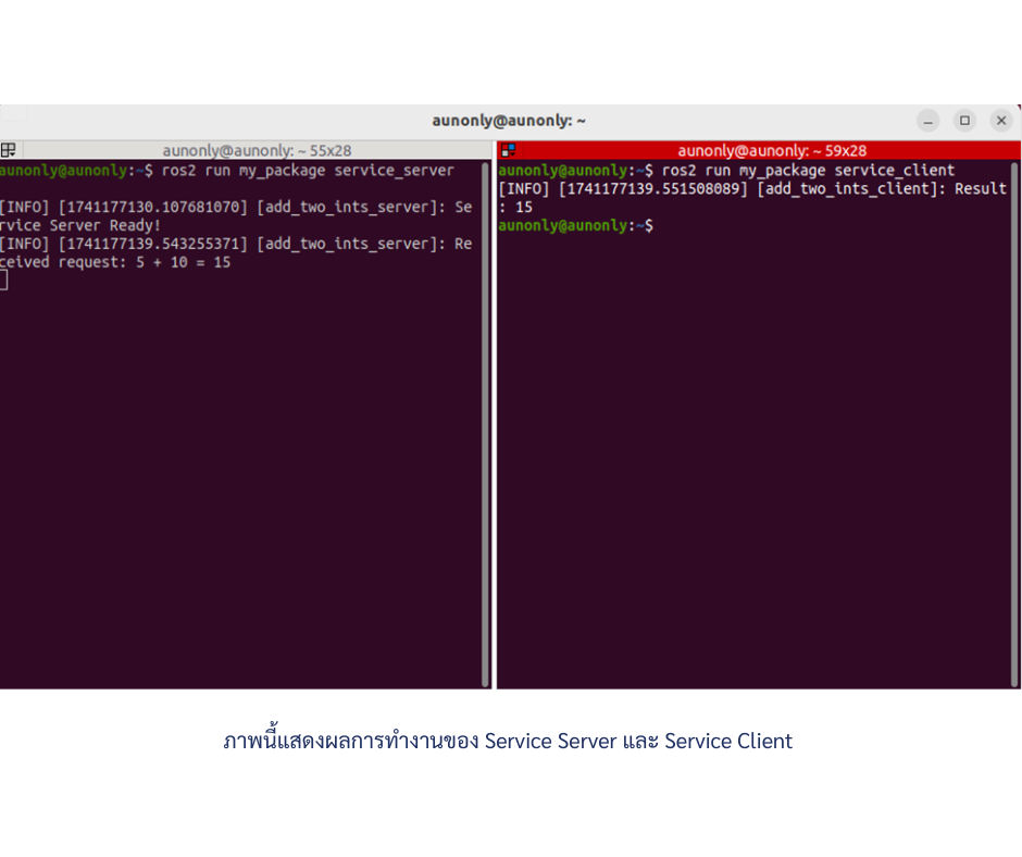 เมื่อ Service Client ส่ง คำสั่ง ที่ประกอบด้วยตัวเลขสองตัว (เช่น 5 และ 10) ไปยัง Service Server, Service Server จะทำการบวกตัวเลขทั้งสองและส่งผลลัพธ์กลับไปยัง Client
