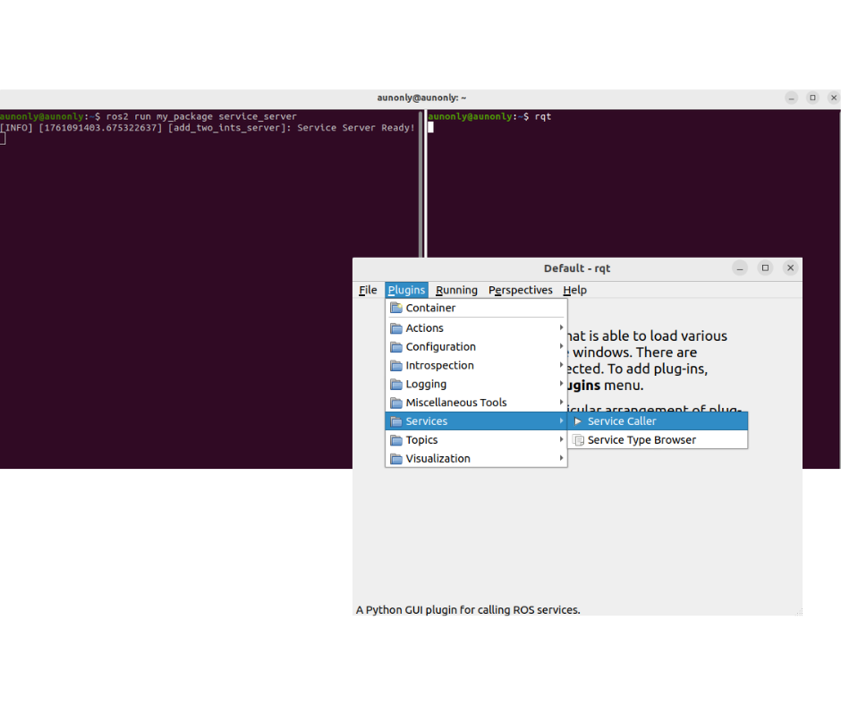 สามารถทดลองใช้เครื่องมือ RQT ในการเรียก Service